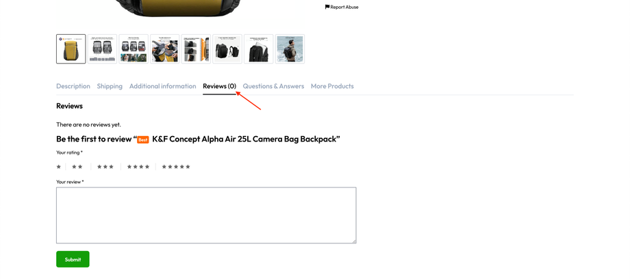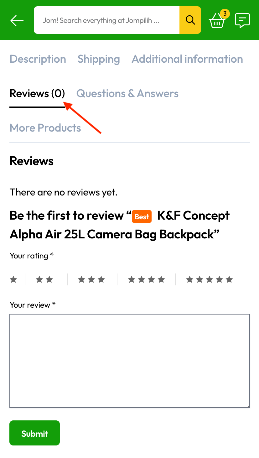 5. On the product page, choose a rating and insert your review by click on the Reviews tab.