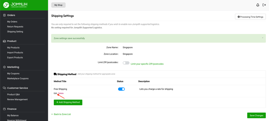 Adding Free Shipping to a Shipping Zone for Non-JSL