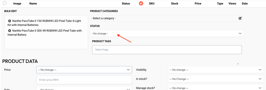 2. Select Edit by click on the Bulk Actions dropdown and click the Apply button.
