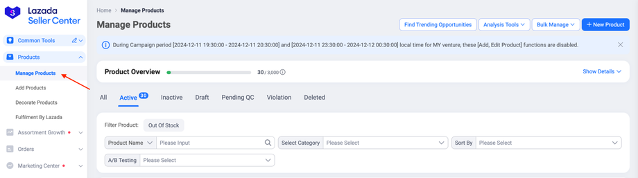 1. Login to your Lazada Seller Center account.