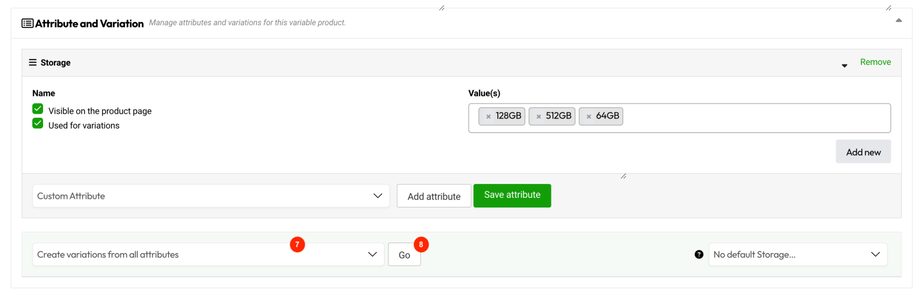 3. Let's take Storage as example, ensure Used for variations was checked all the time.