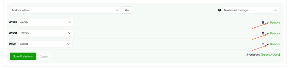 10. Start editing each variation by click on the Product ID or toggle down button.