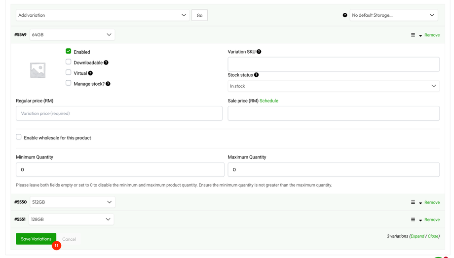 - Variation SKU – Enter the Variation SKU which should not be the same with Parent SKU.