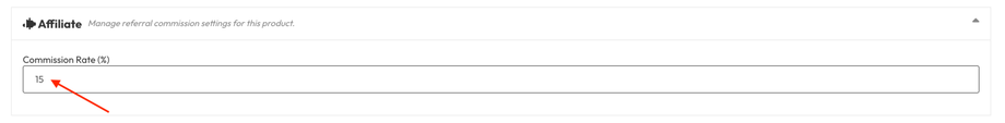 4. Under the Affiliate section of each product, insert your desired Commission Rate (%).