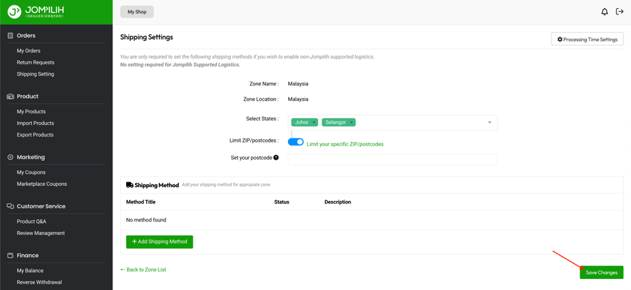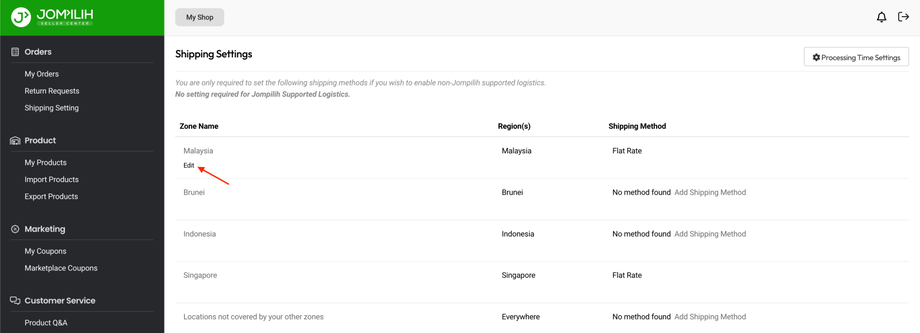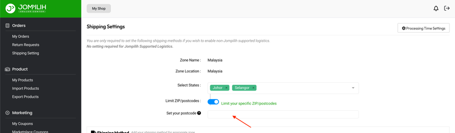 If you wish to enable non-Jompilih supported logistics, these shipping methods represent the options customers will see on the checkout page.